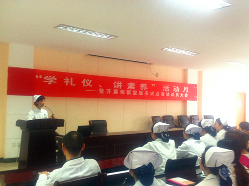 4.27下午,我院召開全院護理人員“學禮儀、講素養”活動動員大會。會上潘院長做了重要講話,把5月份定為“學禮儀、講素養”活動月。本次活動圍繞2015年醫院開展“優質服務年”為契機,利用5.12護士節期間,掀起“學禮儀、講素養”的熱潮。旨在規范護理禮儀,更深刻的認識禮儀素養對醫療工作的重要性,糾正和改變護理行為中的不文明言行。通過這次活動的開展,使護理人員自覺樹立良好的服務形象,進一步認真落實以“病人為中心的”的服務理念,加強服務意識,改善患者就醫體驗,營造講素養、懂禮儀的和諧環境,提升醫院的精神文明建設和服務品牌。(護理部報道)